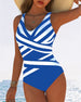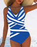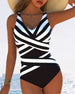 Casual gestreept badpak met V-hals, eendelig