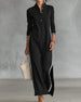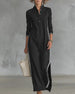 SPECIFICATIES Stijl: Gewoontjes Materiaal: katoenblends Type jurk: Verschuivings jurk Jurk lengte: Maxi Hals lijn: Staande kraag Patroon type: Gestreept,Kleurblok Mouw type: Normale mouw Mouw lengte: Lange mouw Details: Toetsen Pasvorm: Loszittend Seizoen: Lente,Val Gelegenheid: Dagelijks Pakket bestaat uit: 1 x Jurk MAATTABEL (cm) Maat Bors...