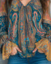 Bohemische V-Hals Blouse Met Uitlopende Mouwen