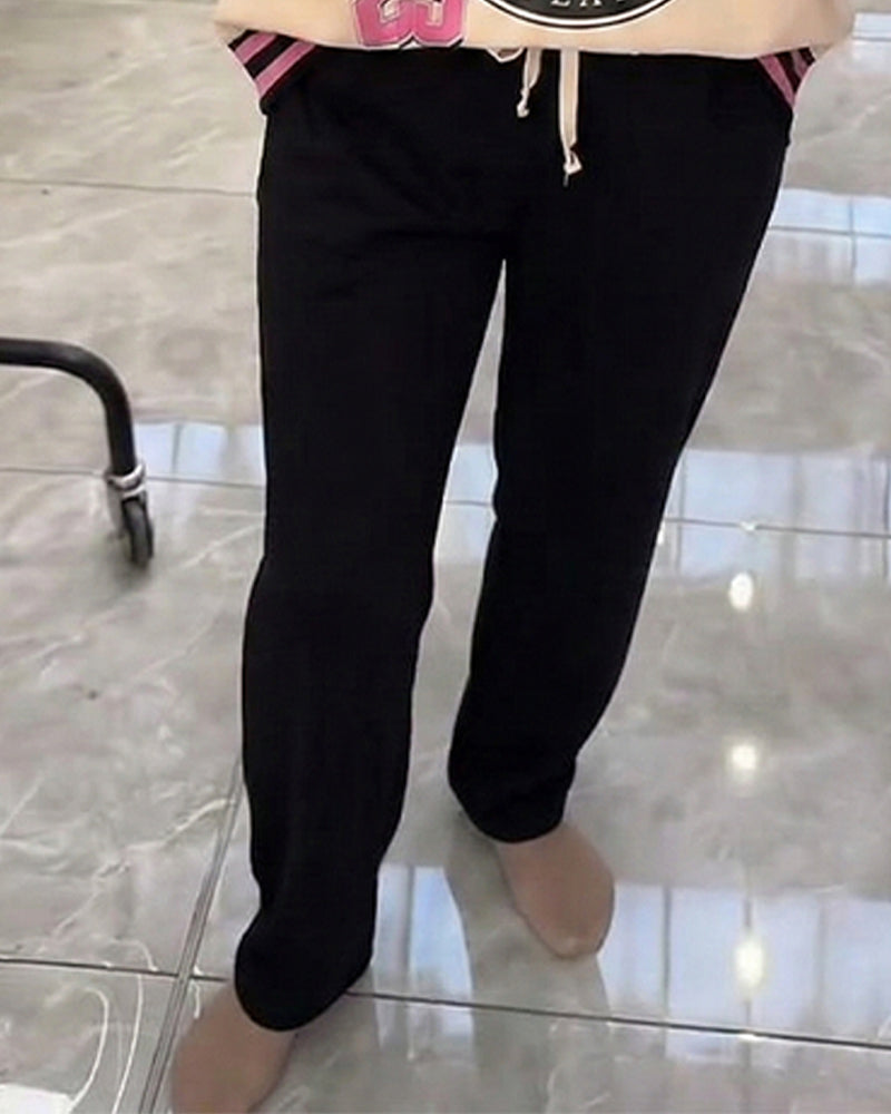 Casual effen kleur rechte broek met rits en zak