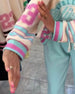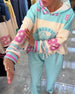 Modieuze Sweatshirt Met Halve Rits En Regenboogstrepen