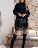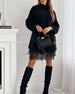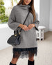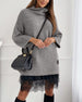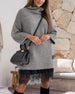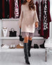 Casual hoge kraag pullover mesh jurk set in effen kleur