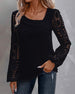 Langarm Top V-Hals Kantpaneel