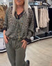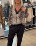 Mode luipaard print blouse met V-hals en kant patchwork
