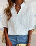 Blouse Vlindermouw Ronde Hals Geborduurd