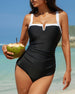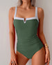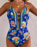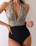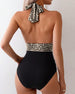 Badpak Bedrukt Contrast Halternek Eén Stuk