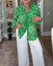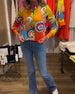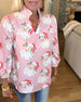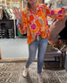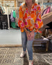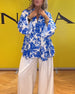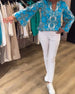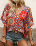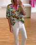 Blouse met lange mouwen en kleurrijke V-hals met print
