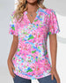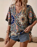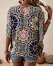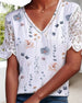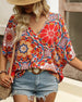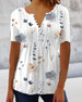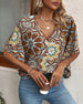 Blouse met knoopjes met halve mouw, V-hals en retroprint