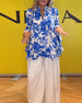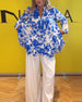 Blouse met opstaande kraag en halve mouw met bloemenprint