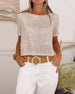SPECIFICATIES Toptype: Bloes Stijl: Gewoontjes Materiaal: katoenblends Gelegenheid: Dagelijks Hals lijn: Ronde nek Patroon type: Effen kleur Mouw type: Raglan mouw Mouw lengte: Korte mouw Pasvorm: Normaal Seizoen: Lente,Zomer Details: Uithollen,Veter Pakket bestaat uit: 1 x bloes MAATTABEL (cm) Maat Borst Lengte S 97 65 M 101 66.5 L 10...