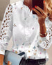 Blouse Met Kanten Inzet Ronde Hals Bedrukt