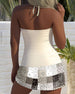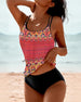 SPECIFICATIES Stijl: Vakantie Materiaal: 15% Spandex,85% Polyester Gelegenheid: Vakantie Hals lijn: U-hals_U Patroon type: Afdrukken Mouw lengte: Mouwloos Top type: Tankini BH-type: Draadloze BH Bodem type: Korte broek Pasvorm: Normaal Seizoen: Lente,Zomer Details: Rugloos Pakket bestaat uit: 1 x tankini MAATTABEL (cm) Maat Borst Middel Huep...