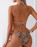 SPECIFICATIES Stijl: Vakantie Materiaal: 15% Spandex,85% Polyester Gelegenheid: Vakantie Hals lijn: Halster Patroon type: Afdrukken Mouw lengte: Mouwloos Top type: Bikini BH-type: Driehoek Bodem type: Hoge snede Pasvorm: mager Details: Veterschoenen Pakket bestaat uit: 1 x Bikini MAATTABEL (cm) Maat Borst Middel Huep Lagere buste S 88 73 9...