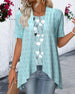 SPECIFICATIES Toptype: Bloes Stijl: Gewoontjes Materiaal: katoenblends Gelegenheid: Dagelijks Patroon type: Afdrukken Mouw type: Normale mouw Mouw lengte: Korte mouw Pasvorm: Normaal Seizoen: Lente,Zomer Details: Uithollen,Twee valse stukken Pakket bestaat uit: 1 x bloes MAATTABEL (cm) Maat Borst Lengte S 97 65 M 101 66.5 L 105 68 XL...