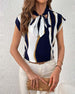 SPECIFICATIES Toptype: Bloes Stijl: Gewoontjes, Bedrijf Materiaal: 5% Spandex, 95% Polyester Gelegenheid: Dagelijks, Werk Hals lijn: Lint Kraag Patroon type: Kleurblok Mouw type: Vleermuis mouw Mouw lengte: Korte mouw Pasvorm: Normaal Seizoen: Lente, Zomer, Val Details: Veterschoenen Pakket bestaat uit: 1 x bloes MAATTABEL (cm) Maat Bo...