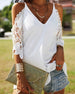 Blouse Met V-hals, Geknoopt En KANT Genomen Ontwerp