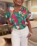 Blouse Met V-Hals Bloemenprint Korte Mouwen