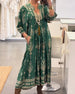 SPECIFICATIES Stijl: Gewoontjes Materiaal: katoenblends Type jurk: A-lijn Jurk lengte: Maxi Hals lijn: V-hals_V Patroon type: Afdrukken Mouw type: verlaagde schouder Mouw lengte: 3/4 mouw Details: Toetsen Pasvorm: Normaal Seizoen: Lente,Zomer Gelegenheid: Dagelijks Pakket bestaat uit: 1 x Jurk MAATTABEL (cm) Maat Borst Lengte S 97 132 M ...