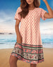 Casual jurk met korte mouwen en V-hals met bloemenprint