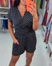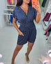 Casual jumpsuit met stippenprint en V-hals met korte mouwen