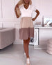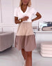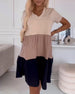 SPECIFICATIES Stijl: Gewoontjes Materiaal: 94% Polyester, 6% Spandex Type jurk: A-lijn Jurk lengte: knie lengte Hals lijn: V-hals_V Patroon type: Kleurblok Mouw type: Normale mouw Mouw lengte: Korte mouw Details: Lapwerk Pasvorm: Normaal Seizoen: Zomer Gelegenheid: Dagelijks Pakket bestaat uit: 1 x Jurk MAATTABEL (cm) Maat Borst Le...