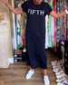 Casual jurk met letterprint en ruches aan de mouwen en split