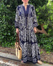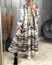 SPECIFICATIES Stijl: Gewoontjes Materiaal: katoenblends Type jurk: A-lijn Jurk lengte: Maxi Hals lijn: V-hals_V Patroon type: Afdrukken Mouw type: Flare mouw Mouw lengte: Lange mouw Details: Lapwerk Pasvorm: Loszittend Seizoen: Lente,Zomer,Val Gelegenheid: Dagelijks Pakket bestaat uit: 1 x Jurk MAATTABEL (cm) Maat Borst Lengte S 97 130 M...