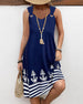 SPECIFICATIES Stijl: Gewoontjes Materiaal: katoenblends Type jurk: A-lijn Jurk lengte: knie lengte Hals lijn: V-hals_V Patroon type: Gestreept, Afdrukken Mouw lengte: Mouwloos Pasvorm: Normaal Seizoen: Lente, Zomer Gelegenheid: Dagelijks, Vakantie Pakket bestaat uit: 1 x Jurk MAATTABEL (cm) Maat Borst Lengte S 95 100 M 100 101...