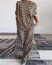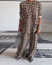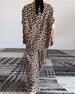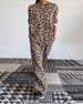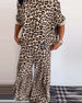 Casual luipaardprint top wijde pijp broek set met ronde hals en zak