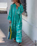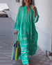 Casual losse lange jurk met V-hals en uitlopende mouwen