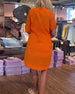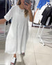 SPECIFICATIES Stijl: Gewoontjes Materiaal: katoenblends Type jurk: Verschuivings jurk Jurk lengte: Boven de knie Hals lijn: V-hals_V Patroon type: Effen kleur Mouw type: Normale mouw Mouw lengte: 3/4 mouw Details: Zak, Toetsen Pasvorm: Normaal Seizoen: Lente, Zomer Gelegenheid: Dagelijks Pakket bestaat uit: 1 x Jurk MAATTABEL (cm) Maat Borst...