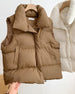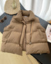 Eenvoudige effenkleurige, gewatteerde jas met ritszak en mouwloos design