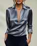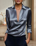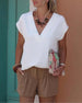 Effen Eenvoudige V-Hals Blouse Met Elegante Uitstraling