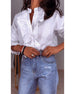 SPECIFICATIES Toptype: Bloes Stijl: Vakantie Materiaal: katoenblends Gelegenheid: Dagelijks Hals lijn: Kraag Patroon type: Effen kleur Mouw type: Normale mouw Mouw lengte: Lange mouw Pasvorm: Normaal Seizoen: Zomer Pakket bestaat uit: 1 x bloes MAATTABEL (cm) Maat Borst Lengte S 98 65 M 103 66.5 L 108 68 XL 114 69.5 2XL 120 71 3X...