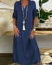 SPECIFICATIES Stijl: Gewoontjes Materiaal: Denim, Polyester Type jurk: Denim Jurk lengte: Maxi Hals lijn: Revers Patroon type: Effen kleur Mouw type: Normale mouw Mouw lengte: Halve mouw Pasvorm: Loszittend Seizoen: Lente, Zomer, Val Gelegenheid: Dagelijks Pakket bestaat uit: 1 x Jurk MAATTABEL (cm) Maat Borst Mouwen Middel Scho...