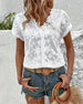 SPECIFICATIES Toptype: Bloes Stijl: Gewoontjes Materiaal: katoenblends,Veter Gelegenheid: Dagelijks Hals lijn: V-hals_V Patroon type: Bloemen,Effen kleur Mouw type: Normale mouw Mouw lengte: Korte mouw Pasvorm: Normaal Seizoen: Zomer Details: Veter Pakket bestaat uit: 1 x bloes MAATTABEL (cm) Maat Borst Lengte S 96 63 M 100 64 L 106 65...