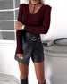 Eenvoudige effen V-hals top met lange mouwen en elegante print
