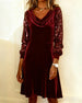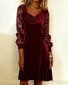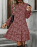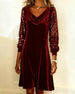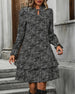 Elegante jurk met vintage print, V-hals en lange mouwen