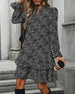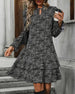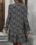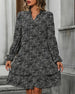 Elegante jurk met V-hals en lantaarnmouwen met geometrische print
