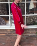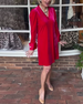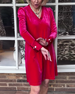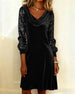Elegante jurk met V-hals, driekwart mouw en trekkoord