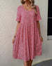 SPECIFICATIES Stijl: Elegant Materiaal: katoenblends Type jurk: A-lijn Jurk lengte: Midi Hals lijn: Ronde nek Patroon type: Bloemen Mouw type: Normale mouw Mouw lengte: Korte mouw Details: Lapwerk, gerimpeld Pasvorm: Normaal Seizoen: Lente, Zomer, Val Gelegenheid: Dagelijks Pakket bestaat uit: 1 x Jurk MAATTABEL (cm) Maat Borst Lengte S 95...