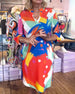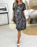 Elegante jurk met V-hals, knoopsluiting en trekkoord met print