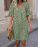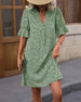 SPECIFICATIES Stijl: Gewoontjes Materiaal: katoenblends Type jurk: A-lijn Jurk lengte: Boven de knie Hals lijn: V-hals_V, Revers Patroon type: Afdrukken Mouw type: Normale mouw Mouw lengte: 3/4 mouw Pasvorm: Normaal Seizoen: Zomer Gelegenheid: Dagelijks Pakket bestaat uit: 1 x Jurk MAATTABEL (cm) Maat Borst Lengte S 95 90 M 100 91 L 10...