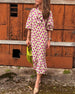 SPECIFICATIES Stijl: Elegant Materiaal: katoenblends Type jurk: A-lijn Jurk lengte: Midi Hals lijn: V-hals_V Patroon type: Afdrukken Mouw type: Normale mouw Mouw lengte: Lange mouw Details: Toetsen,Trekkoord Pasvorm: Normaal Seizoen: Lente,Zomer Gelegenheid: Dagelijks Pakket bestaat uit: 1 x Jurk MAATTABEL (cm) Maat Borst Lengte S 97 120 ...
