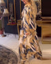 Elegante tie-dye patchwork jurk met trekkoord en ballonmouwen