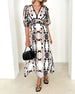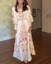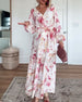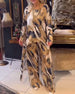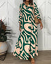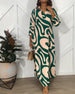 Elegante maxi-jurk met revers en lange mouwen met bloemenprint