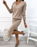 SPECIFICATIES Stijl: Gewoontjes Toptype: Topjes Categorie: Sets Materiaal: katoenblends Patroon type: Effen kleur Hals lijn: V-hals_V Mouw type: Normale mouw Mouw lengte: Lange mouw Pasvorm: Normaal Seizoen: Val,Winter Details: Spleet Gelegenheid: Dagelijks Pakket bestaat uit: 1 x Top, 1 x rok MAATTABEL (cm) Maat Borst Lengte Middel S 9...