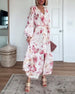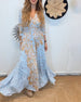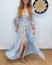SPECIFICATIES Stijl: Elegant Materiaal: katoenblends Type jurk: A-lijn Jurk lengte: Maxi Hals lijn: V-hals_V Patroon type: Bloemen Mouw type: Lantaarn mouw Details: Veterschoenen,Toetsen,Spleet Pasvorm: Normaal Seizoen: Lente,Zomer Gelegenheid: Dagelijks Pakket bestaat uit: 1 x Jurk MAATTABEL (cm) Maat Borst Lengte S 95 130 M 100 133 L...