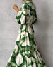 Elegante lange jurk met pofmouwen en print
