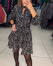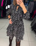 Elegante polkadot losse jurk met hoge hals zak